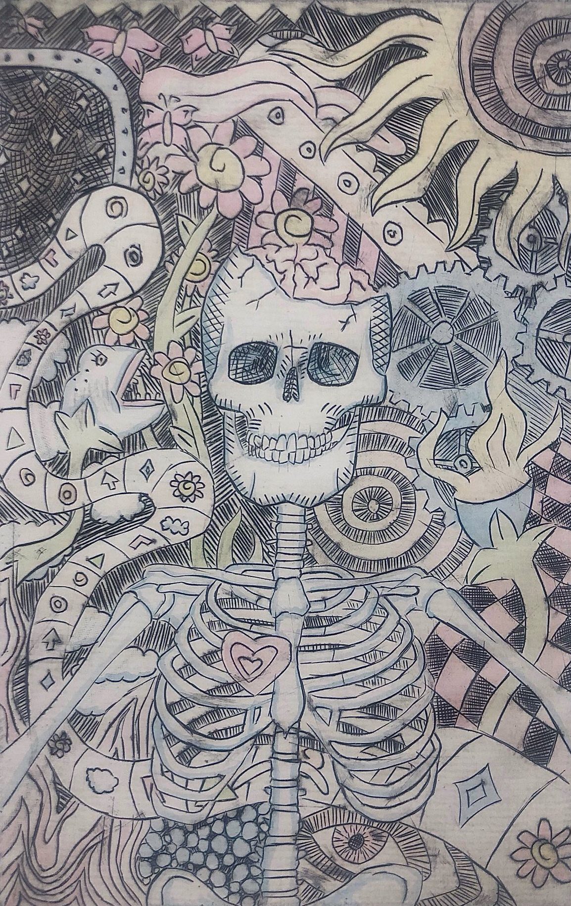 My goal with my art is to explore taboo ideas and conversations. The areas of conversation that I explore are religious/spiritual, mental health, environmental, and whatever else comes to mind. My art is mainly just an avenue to explore the meaning of life, why I am here, and what I am meant to do.